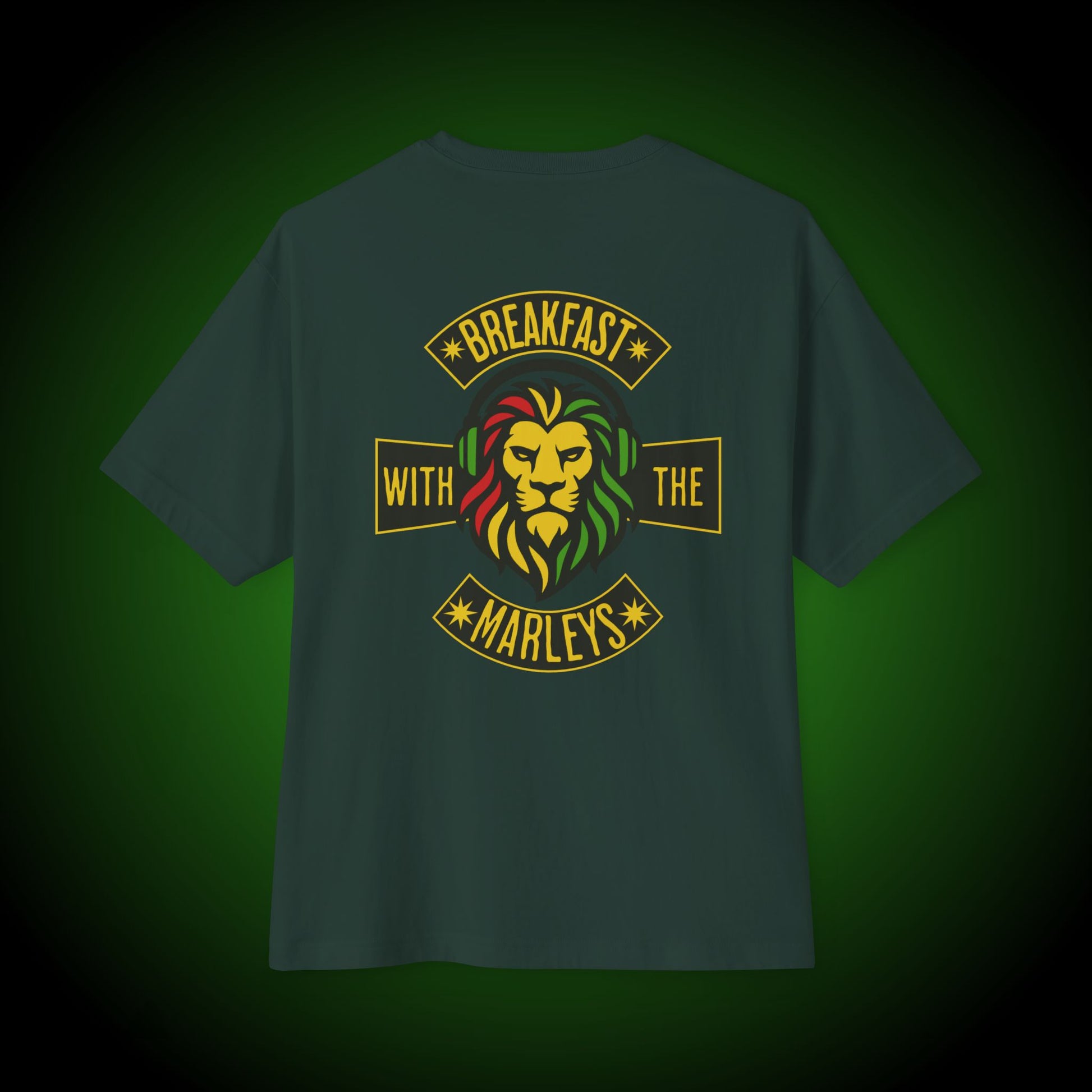 The perfect gear for the dedicated listener. This is the official Unisex Boxy T-Shirt for "Breakfast With The Marleys," your weekly journey into the musical legacy of the Marley family, heard every Saturday at 8am HST on the Hawaii Reggae Network.